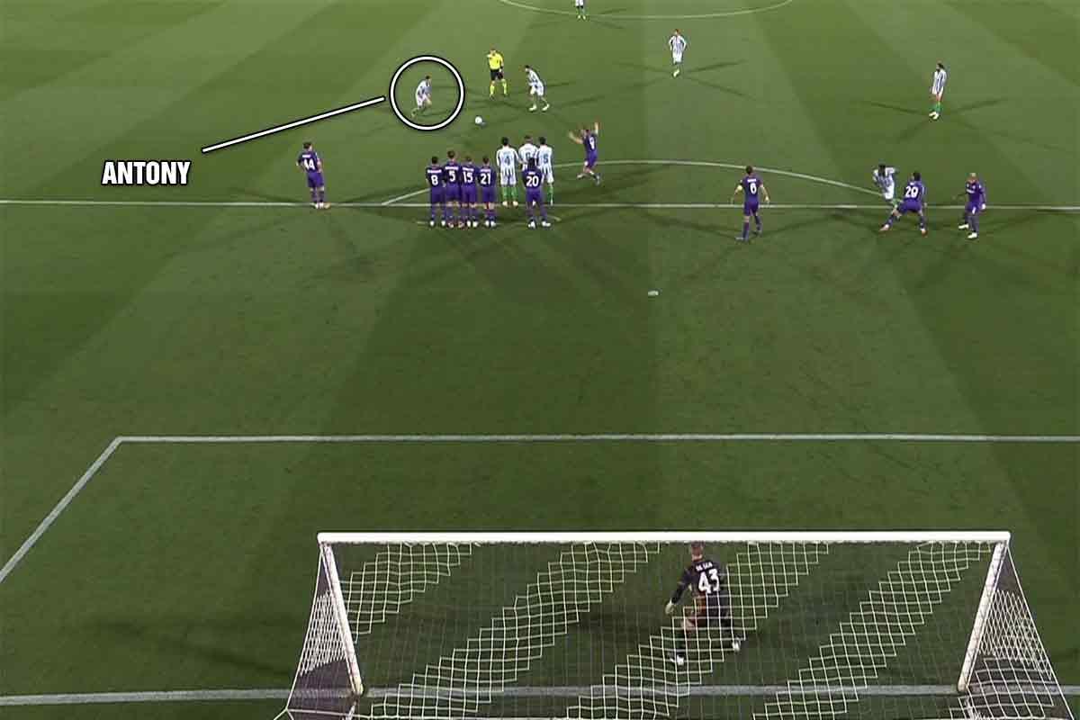Trận bán kết gặp Fiorentina là bản tuyên ngôn hoàn hảo nhất cho sự trở lại của Antony. Anh không chỉ ghi bàn mở tỷ số ở lượt đi, mà còn thực hiện một cú sút phạt đẳng cấp thế giới trong trận lượt về. Bóng đi cong, vượt qua hàng rào như có lực hấp dẫn riêng, đánh bại cả ‘thánh Tôn’ David De Gea.