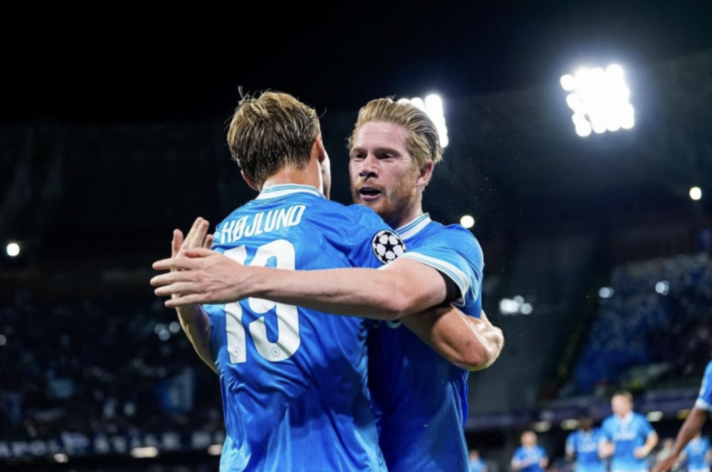 Trong trận đấu tại Naples, Hojlund đã lập một cú đúp, với cả hai bàn thắng đều đến từ những đường chuyền dọn cỗ của De Bruyne. Sự ăn ý của bộ đôi này ngay lập tức cho thấy sức mạnh đáng sợ của hàng công Napoli.